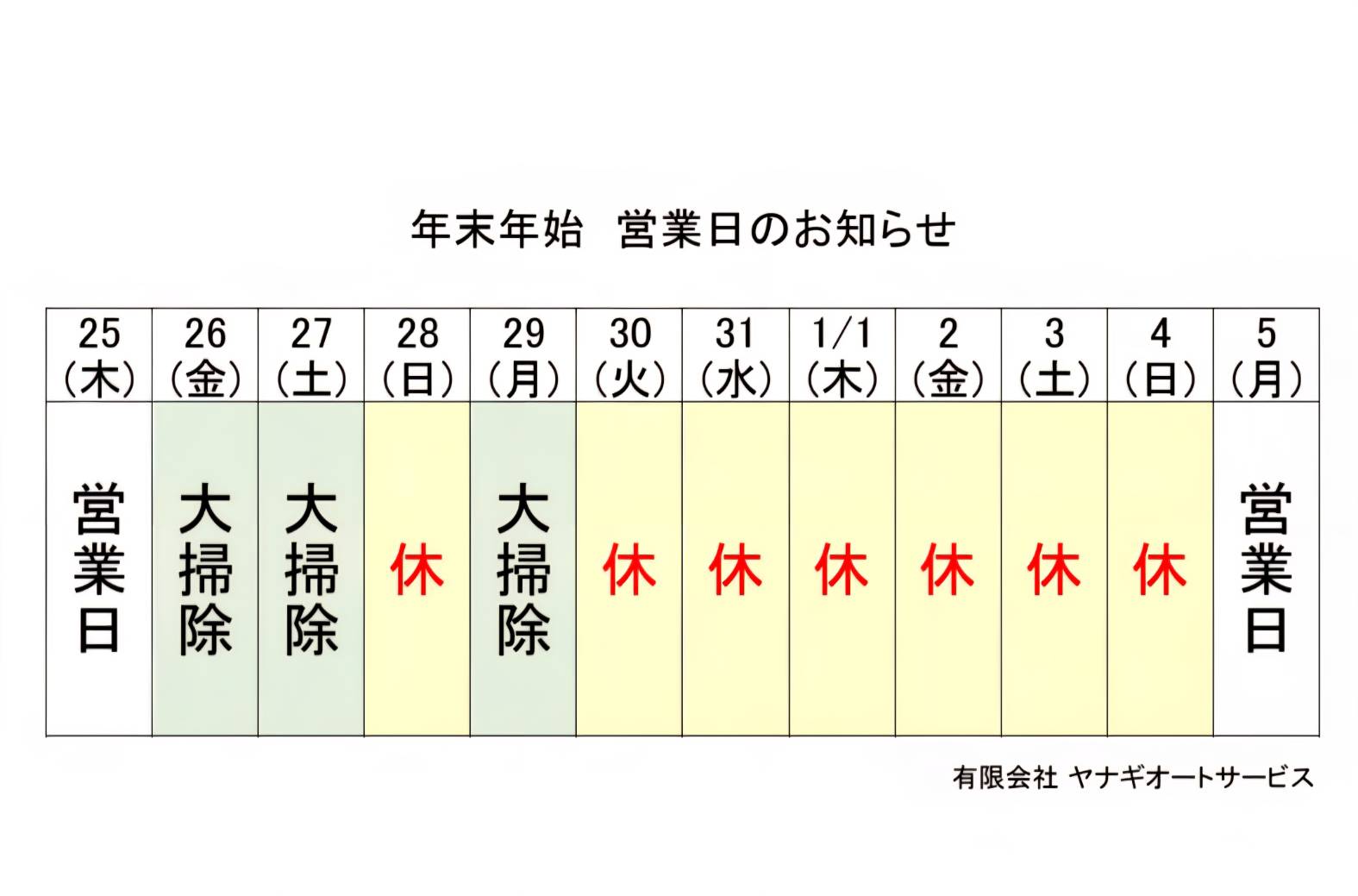ヤナギのポルシェブログ 年末年始の営業日に関するご案内 2025.12.02 平素より格別のお引き立てを賜り、厚く御礼申し上げます。 さて、誠に勝手ながら弊社の年末年始の営業日は下記の通りとさせて頂きます。 皆様には大変ご不便をおかけしますが、何卒ご理解のほど よろしくお願い申し上げます。 定休日 日曜日・祝祭日 営業時間 8:30~17:30 尚、休業中に頂きましたFAXやメールは営業日になりましたら 順次対応させて頂きます。 カテゴリー: TOPICS <前の記事 一覧 つぎの記事>