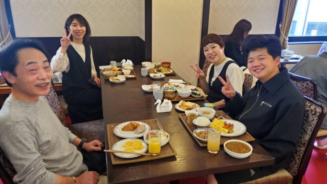 美味しいお料理が並んでいたのですが、寝不足で少ししか食べられなかった人もいました。残念。